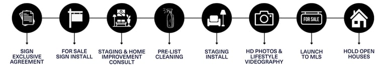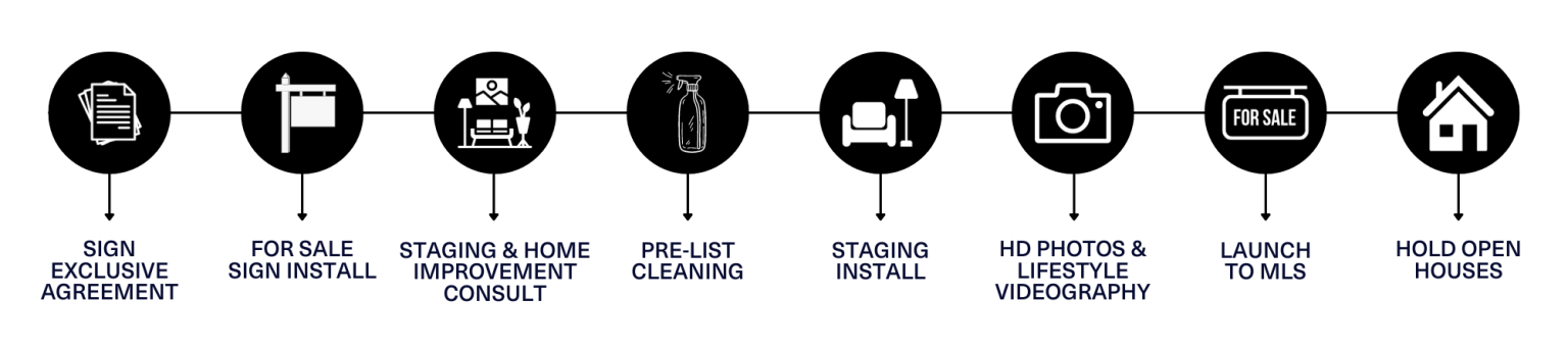 In order to be completely prepared for the launch of the listing, and to limit the stress during the live listing period, it is best we do as much as we can ahead of time to ensure the listing appeals to the most amount of buyers. We will work together to create a proposed timeline to show you when we would have to get started in order to go live on your desired date. This includes dates for a staging consult, professional house cleaning, a handyman for any repairs, staging day, photographer, videographer, etc. See below as an example.